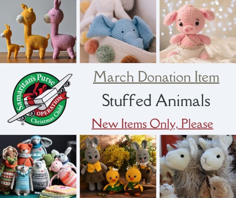 Donate funds- funds will be used to purchase items for shoeboxes packed at PCC and to provide the $10 processing & shipping donation to Samaritan’s Purse